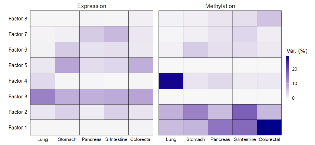研究人员主要分析样本的转录组学和甲基化特征,使用多组学因子分析(MOFA),构建了一个整合两个组学数据集的8因子模型,从而应用聚类算法来进行分型。
