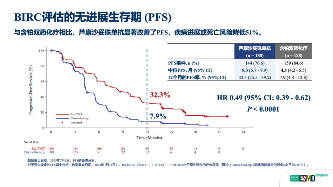 图1.OptiTROP-Lung04研究由BICR评估的PFS数据